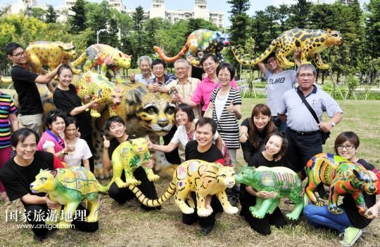 國(guó)家旅游地理 臺(tái)灣臺(tái)北9月18日訊 9月17日,人們?cè)谂_(tái)北市青年公園的云豹彩繪活動(dòng)上合影。當(dāng)日,臺(tái)北市青年公園舉行“記憶與重生——臺(tái)北市青年公園公共藝術(shù)計(jì)劃”活動(dòng),讓市民們彩繪出自己心中已經(jīng)滅絕的臺(tái)灣云豹的模樣,以此呼吁環(huán)保。 /新華社發(fā)(吳景騰 攝)