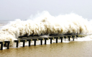 在蕭山美女壩和九號壩處,海塘轉(zhuǎn)彎,潮水沖擊丁字壩和江堤,同樣能形成“回頭潮”;錢塘江由西折向南面,到九溪珊瑚沙一帶,同樣有一條長長的江堤伸入江中,雖然潮水到達(dá)這里開始減弱,但當(dāng)潮水方向與風(fēng)向一致時,推波助瀾,潮浪也會很大。