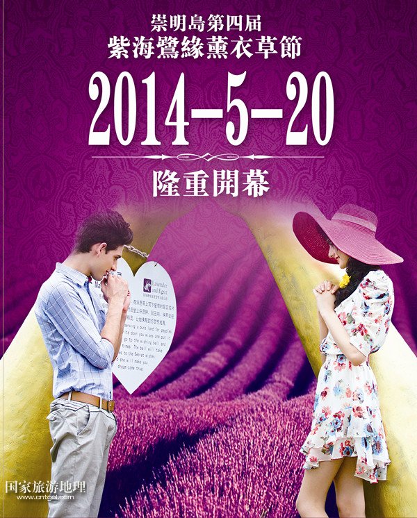 5月20日至6月20日,為期1個(gè)月的2014上海崇明島第四屆薰衣草節(jié)將在崇明島舉行,市民不用去法國普羅旺斯就可欣賞到紫色花海的美景了。此次活動地點(diǎn)設(shè)在中國最美麗的“花園”——上海崇明島上的香草種植園紫海鷺緣浪漫愛情主題公園內(nèi)。