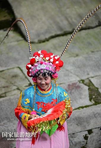 國(guó)家旅游地理 湖北恩施5月28日訊 5月27日,湖北省利川市柏楊壩鎮(zhèn)柏壩楊村的民間藝人陳文菊在表演利川燈歌的代表作《龍船調(diào)》。利川燈歌起源于湖北省恩施土家族苗族自治州利川市柏楊壩鎮(zhèn)一帶,距今約300多年歷史,2011年入選第三批國(guó)家級(jí)非物質(zhì)文化遺產(chǎn)名錄。有記載稱,從清朝開始,當(dāng)?shù)厝罕姺昴赀^(guò)節(jié)、喜慶集會(huì)、玩彩龍船時(shí)都要唱燈歌。如今,在柏楊壩鎮(zhèn),有一些熱愛民族文化的老藝人,用心口相傳的形式傳唱利川燈歌,釋放土家人豁達(dá)、幽默的人生情懷。利川燈歌具有很高的民族文化藝術(shù)價(jià)值,《龍船調(diào)》《篩子關(guān)門眼睛多》《打把扇子送情》等一批燈歌旋律優(yōu)美、歌詞詼諧生動(dòng),深受人們喜愛。新華社發(fā)(楊順丕 攝)
