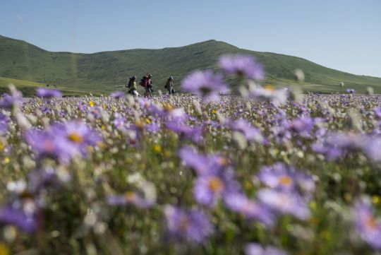 國家旅游地理四川阿壩州6月19日訊 6月19日拍攝的晨曦下的俄木塘草原花海。目前,四川省紅原縣壤口鄉(xiāng)俄木塘草原花海進入鮮花盛開期。俄木塘草原花海位于四川省紅原縣壤口鄉(xiāng)長江黃河分水嶺之山麓,海拔3500米。每年6月到7月,方圓3平方公里的草原上各種顏色的野花盛開,令游客心馳神往,被譽為“最美的草原花海”。 /新華社記者 江宏景攝