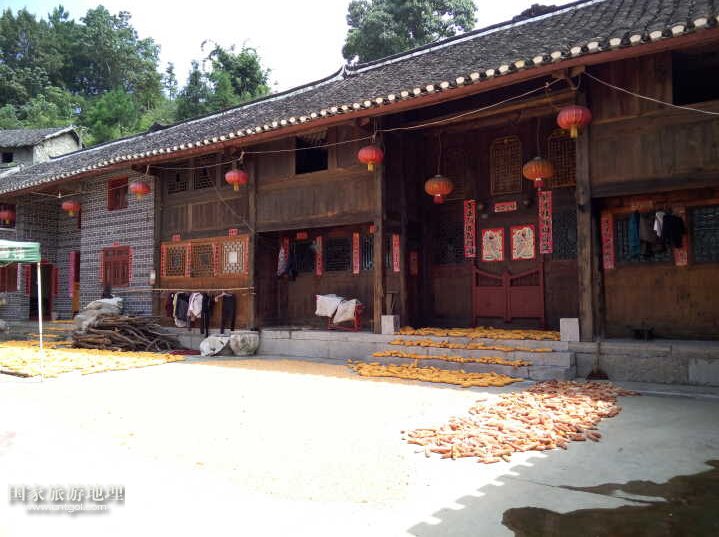 國家旅游地理 貴州黔南8月28日訊 (記者 萬棋民 攝影報道) 上圖是在黔南貴定縣的音寨,音寨是天下布依第一寨。音寨的民居依山而建,一層一層往山上延伸。從圖中可以看到,音寨民居一半是木制結(jié)構(gòu),另一半新建的則是磚石材質(zhì)。這種新與舊的連接是兩個時代的接軌,反映了改革開放前與改革開放后隨著經(jīng)濟(jì)的發(fā)展,少數(shù)民族居民的居住環(huán)境和生活水平得到了極大的提升。在圖片右邊的木制房子大門的正上方,刻著三塊密密麻麻的字,上面刻的是毛澤東語錄,而且不只這一家的木制房子上刻有毛澤主席語錄,可以看出當(dāng)?shù)鼐用駥γ飨木磹壑椤?br />
