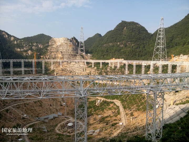 這是黔南平塘縣正在建設(shè)的大射電望遠(yuǎn)鏡,也稱 FAST,預(yù)計將于明年九月建成。FAST具有中國獨(dú)立自主知識產(chǎn)權(quán),是世界上正在建造及計劃中的口徑最大、最具威力的單天線射電望遠(yuǎn)鏡,其設(shè)計綜合體現(xiàn)了我國高技術(shù)創(chuàng)新能力。500米口徑球面射電望遠(yuǎn)鏡是利用貴州喀斯特地區(qū)的洼坑作為望遠(yuǎn)鏡臺址,建造世界第一大單口徑射電望遠(yuǎn)鏡,其擁有30個標(biāo)準(zhǔn)足球場大的接收面積。FAST作為世界最大的單口徑望遠(yuǎn)鏡,將在未來20至30年保持世界一流地位。