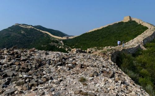 河北省興隆縣境內(nèi)的長城墻體化為碎石堆(7月8日攝)。新華社記者牟宇 攝