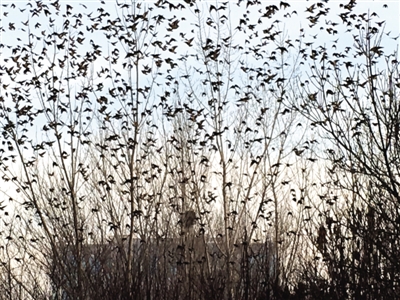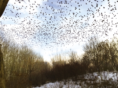 2015年12月30日下午,我在銀川市興慶區(qū)北塔公園游覽。走到北塔東北的樹林邊,突然看見一棵有些怪異的樹——數(shù)九寒冬,為何還有這么多樹葉?仔細(xì)一瞧,哪是什么樹葉,是數(shù)千只麻雀在樹上“開會”。密密麻麻,嘰嘰喳喳,無拘無束。我拿出手機,剛拍了幾張,不知是聽了什么號令,麻雀們“散會”了,瞬間全部飛向藍(lán)天,一個個狀如小飛機??吹贸?,麻雀們挺喜歡銀川,活得挺自在。(通訊員 蓮子)